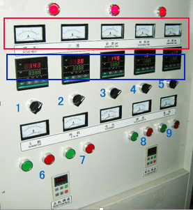 4、開(kāi)關(guān)下面為主機(jī)電流表(8A) 風(fēng)機(jī)電流表(~2A) 電源電壓 副機(jī)電流表(~1A) 備用電流表(XXX)